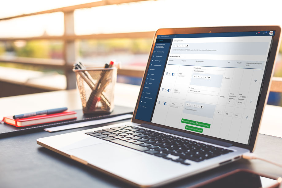 FunktionsübersichtAus den aufgeschriebenen Stunden ergeben sich schlussendlich Rechnung & Rapport. Sie als Chef müssen diese nur noch kontrollieren & ergänzen und danach Ihren Kunden zuschicken.