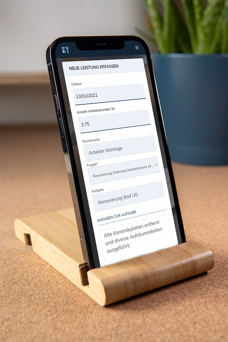 FunktionsübersichtSie und Ihre Mitarbeiter können von überall aus ganz einfach Stunden aufschreiben, sei es über das Mobiltelefon, ein Tablet oder über einen bereitgestellten Computer im Betrieb.