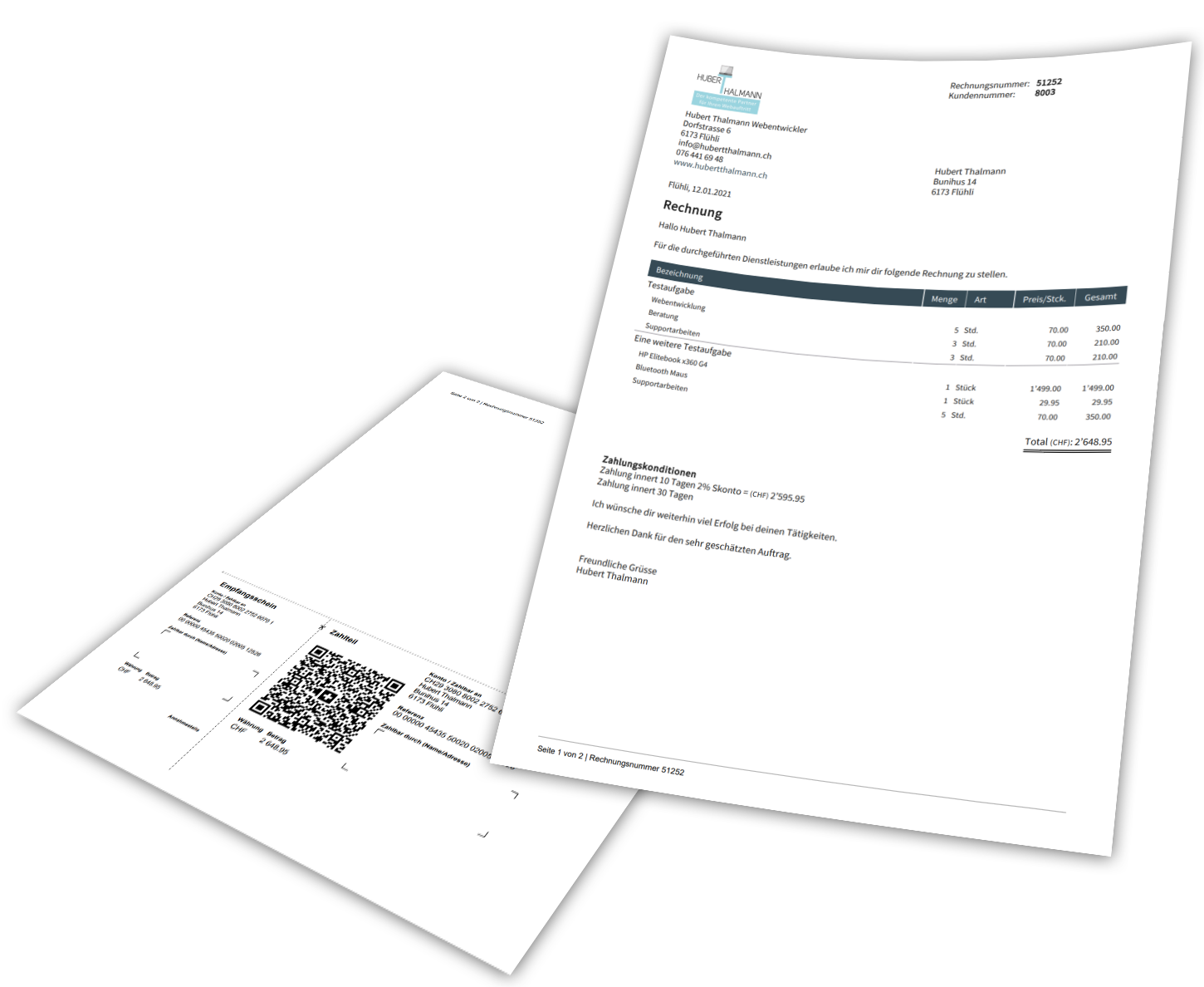 FunktionsübersichtDie Software unterstützt die neuen QR-Einzahlungsscheine, diese werden nach Wunsch automatisch bei jeder Rechnung mitgeschickt.